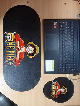 Este proyecto fue un combo pensado para un cliente apasionado por el universo de One Piece. Diseñamos un tapete en cuero para teclado y un padmouse personalizado, logrando piezas que combinan funcionalidad con estilo temático.